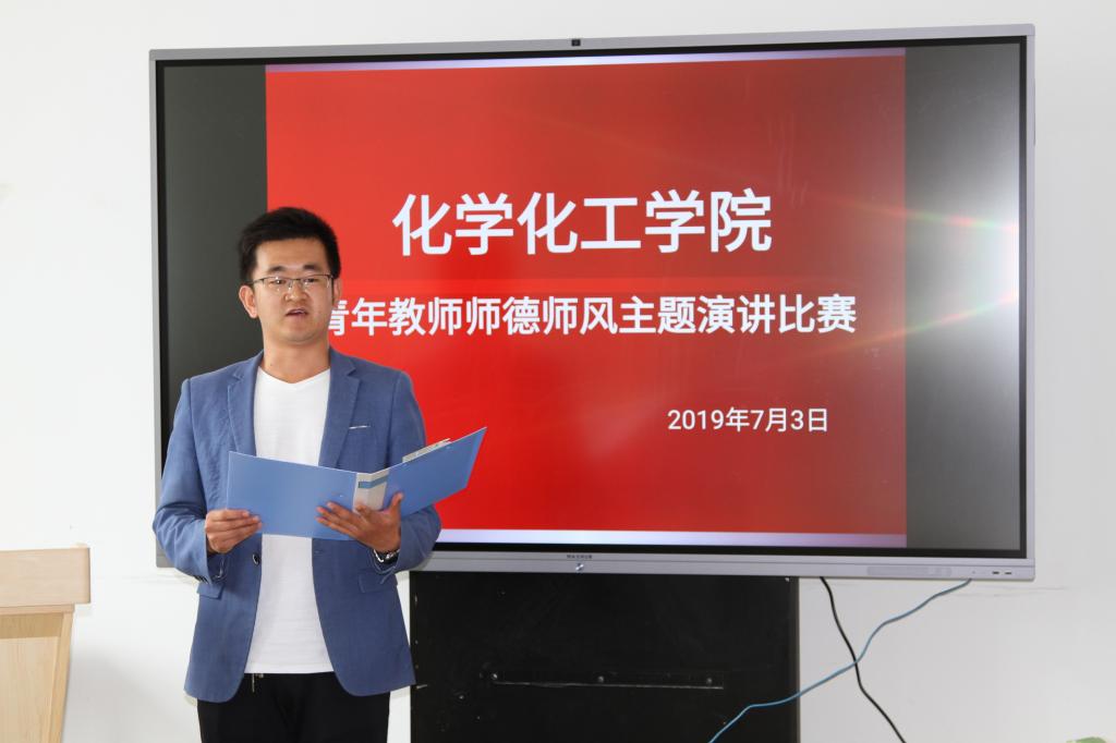 7月3日下午,化学化工学院举办青年教师师德师风主题演讲比赛。全院所有青年教师参加比赛,比赛由学院党总支书记马昌主持。