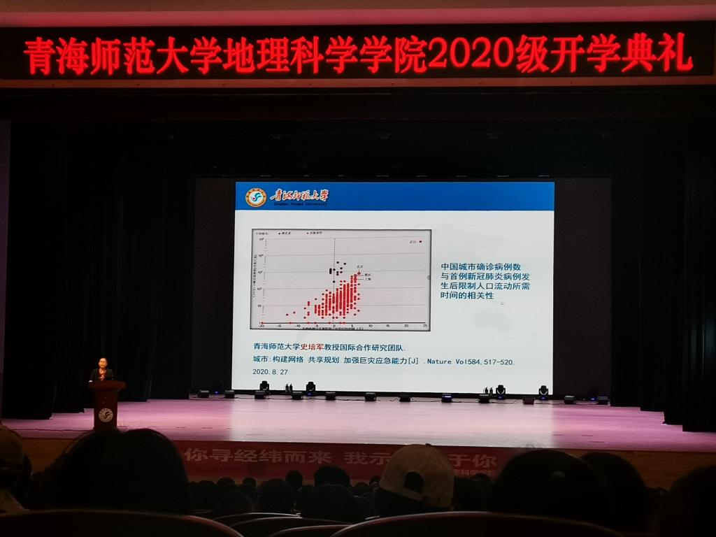 9月23日下午,地理科学学院在大学生活动中心召开迎2020级新生开学典礼,学院全院700余名师生参加了活动。典礼由院党总支副书记洛加才让主持。