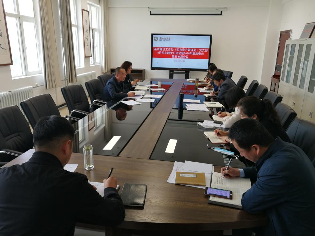 5月27日下午,基本建设工作处(国有资产管理处)党支部召开了5月份主题党日活动暨廉政警示教育专题会议,支部全体党员参加了会议,会议由支部书记王安平主持。
