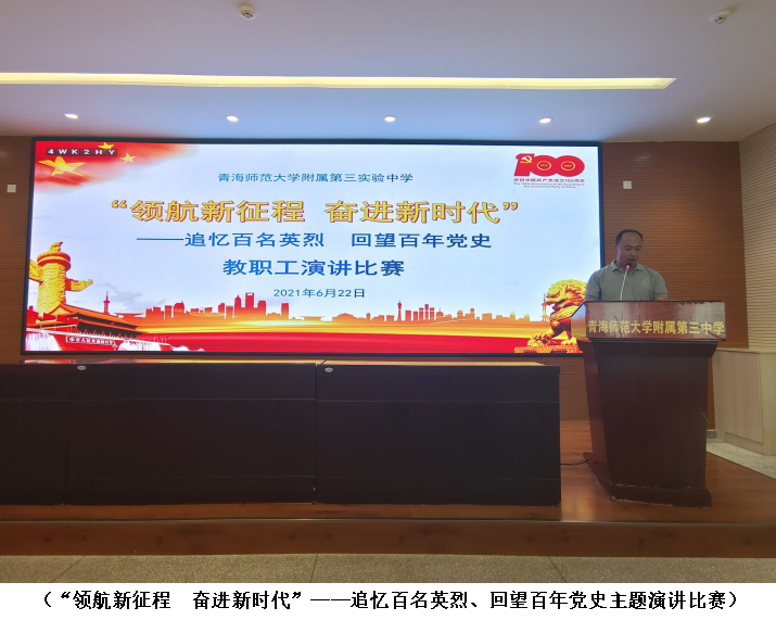 为庆祝中国共产党成立100周年,大力弘扬党的优良传统,6月22日,附属第三实验中学开展教职工庆祝建党100周年“领航新征程 奋进新时代”——追忆百名英烈、回望百年党史主题演讲比赛。会议由工会主席杨宏飞主持,全体教师参加活动。