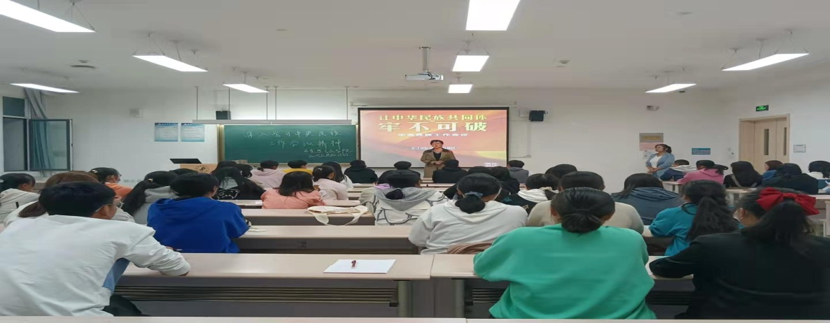 各班班主任主持学习了中央民族工作会议关于“十二个必须”、“四个必然要求”以及“三个正确把握”的有关内容,强调铸牢中华民族共同体意识就是要引导各族人民牢固树立休戚与共、荣辱与共、生死与共、命运与共的共同体理念。