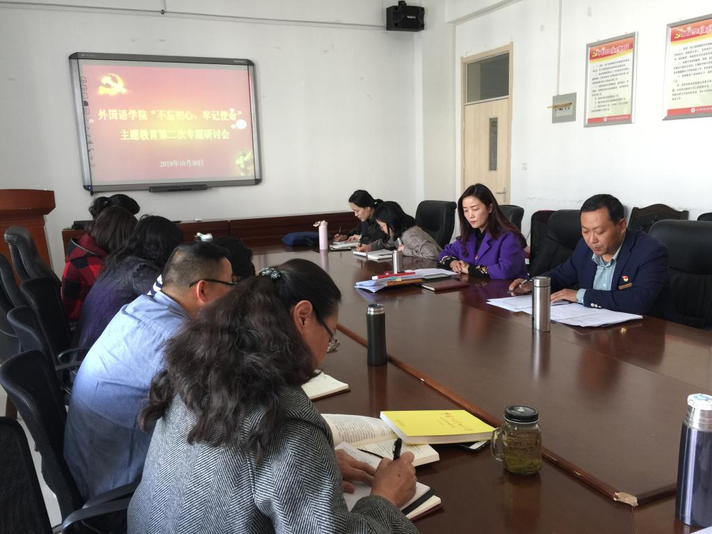 10月30日,外国语学院党总支召开“不忘初心,牢记使命”主题教育第二次专题研讨和第七次集中学习会,院党总支委员、各支部书记、全体教工党员参加了会议。