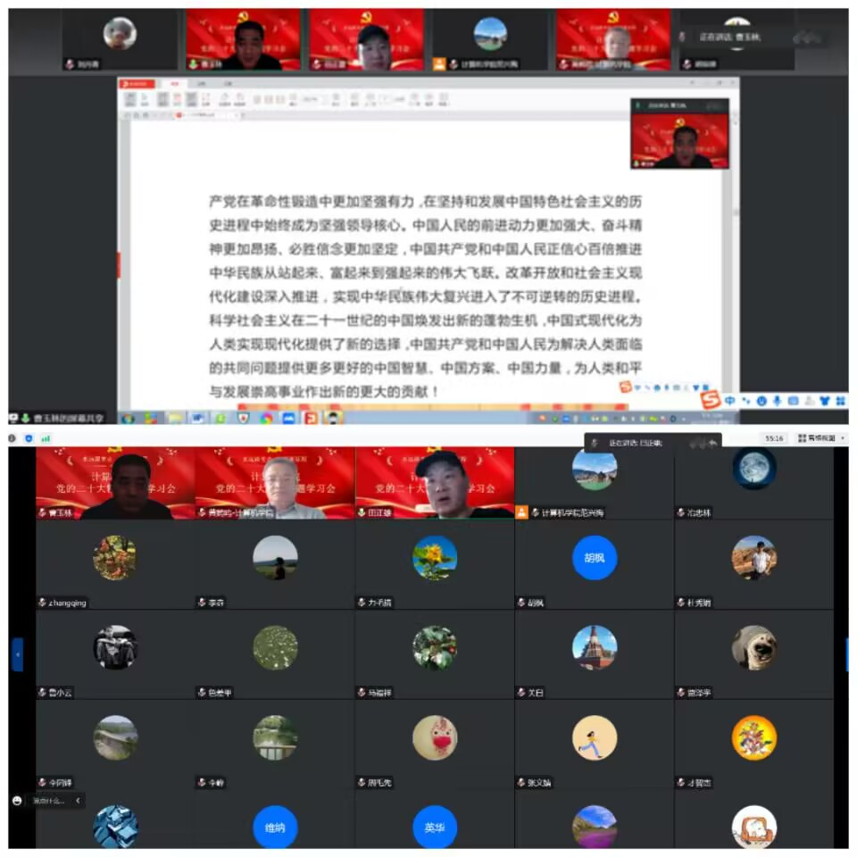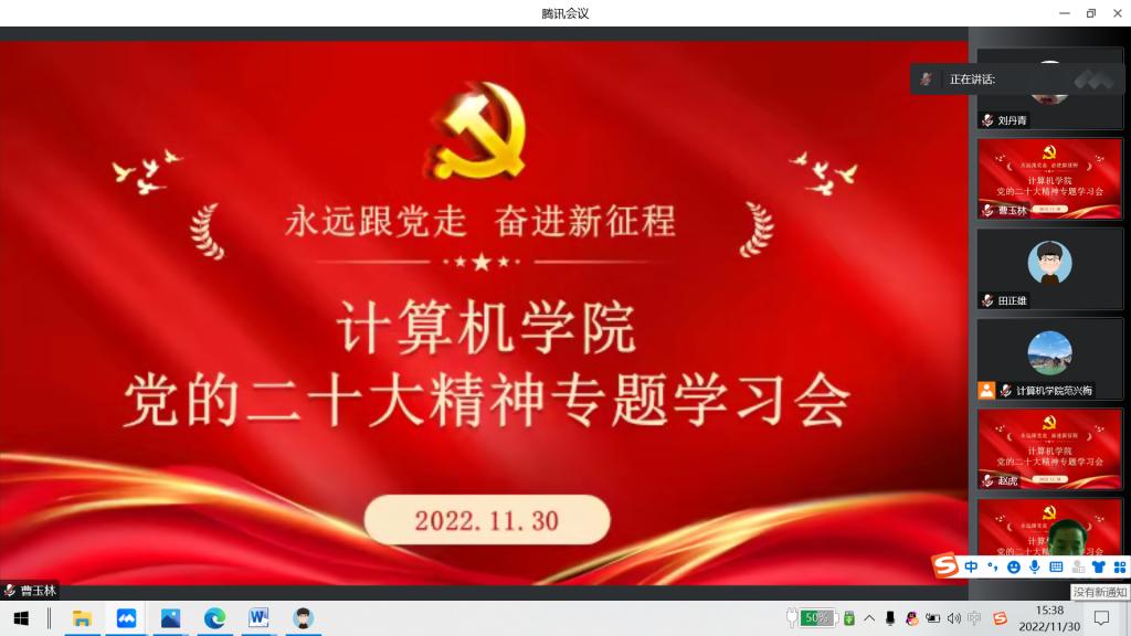 为进一步深化党的二十大精神的学习贯彻,11月30日,计算机学院线上召开党的二十大精神专题学习会,会议由院党总支书记曹玉林主持,学院全体教职工参加了学习。