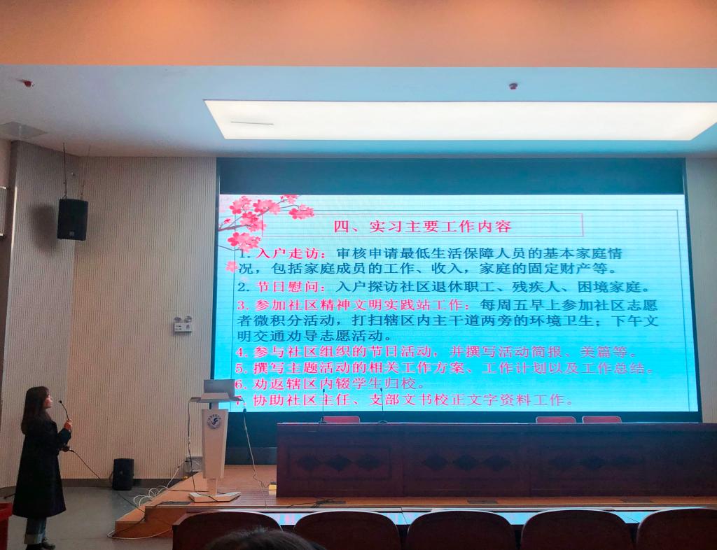 11月4日下午,法学与社会学学院2019级社会工作专业硕士生实习工作中期汇报会在城北校区科技报告厅举行。社会工作系全体教师、全体研究生和本科生参加了汇报会,汇报会由社会工作系主任裴敏超副教授主持。