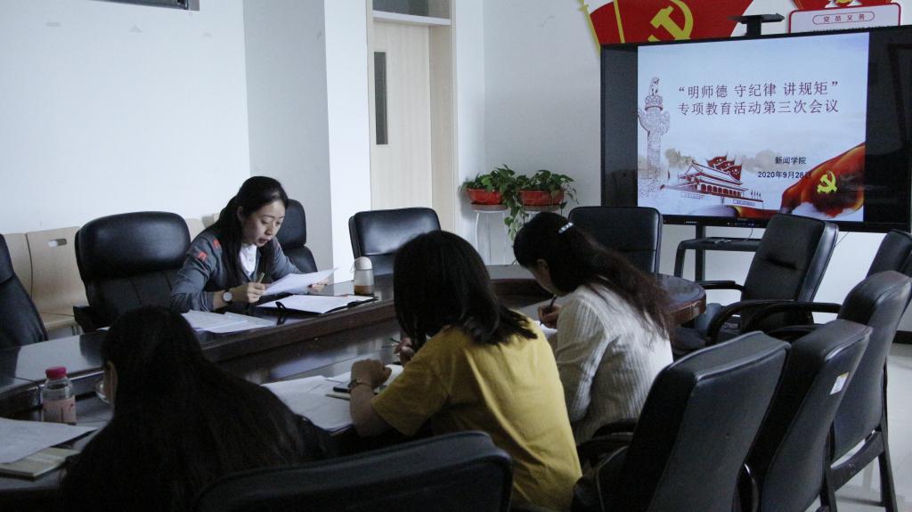 9月28日下午,新闻学院召开“三学三促三提高”专项教育活动启动大会、“明师德 守纪律 讲规矩”专项教育第三次会议、“民族团结进步”宣传月理论学习会议,全院教职工参加,副院长才让卓玛主持了会议。