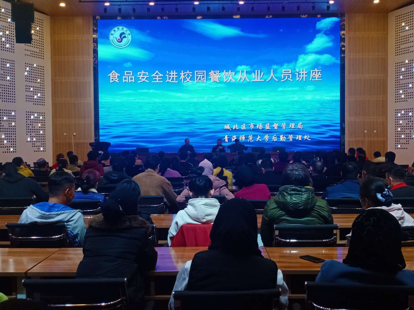 为提高全校师生对食品安全重要性的认识,加强食品安全管理,10月30日,后勤管理处邀请城北区市场监督管理局工作人员来校开展了校园食品安全宣传工作,饮食服务中心和生活服务中心餐饮从业人员近200人参加活动。