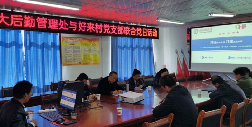 活动中,第一书记王永生以“共谋绿色生活 共建美丽家园——践行习主席关于绿色发展的‘五个追求’讲话精神《习近平谈治国理政(第三卷)》”为主题给扶贫人员和村里的党员们上了专题党课。他从“五个追求”的背景、内容、核心要义等方面入手,向大家讲述了好来村在开展“两个美化”工作中,深入贯彻落实习总书记“五个追求”讲话精神,经过一年的艰苦努力,好来村的村容村貌和村民的精神面貌发生的翻天覆地的变化,“两个美化”工作取得的丰硕的成果。