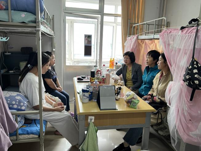 学院老师们走进每间宿舍与学生进行亲切交谈,勉励新生尽快融入新的学习与生活,站在新的起点,勇敢追逐青春梦想。王文颖首先祝贺同学们迈入了更高层次的学术生涯,随后详细询问同学们来校后的感受、生活、学习情况,叮嘱同学们要遵守校纪校规,以高标准制定好未来三年的研究生规划。范建平勉励同学们要树立正确的人生观、价值观,将学习作为第一要务,尽快适应新环境,遇到困难要及时与学院沟通。