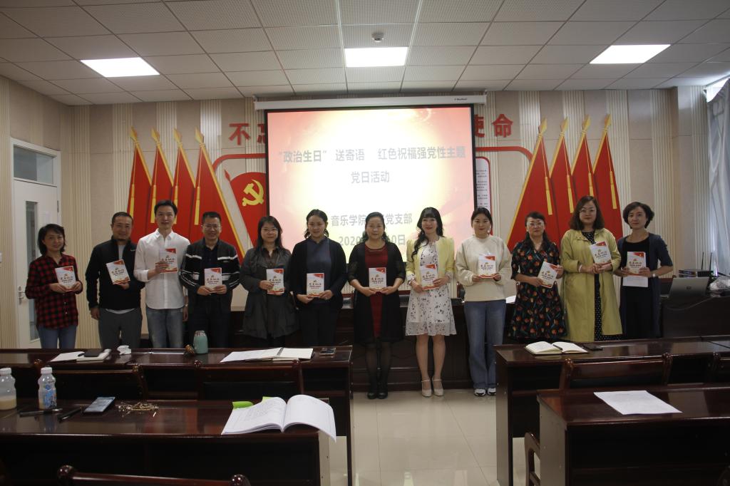 6月10日下午,音乐学院开展“政治生日”送寄语,红色祝福强党性主题党日活动,全体党员参加了本次主题活动。活动由教工党支部书记陈璐主持。