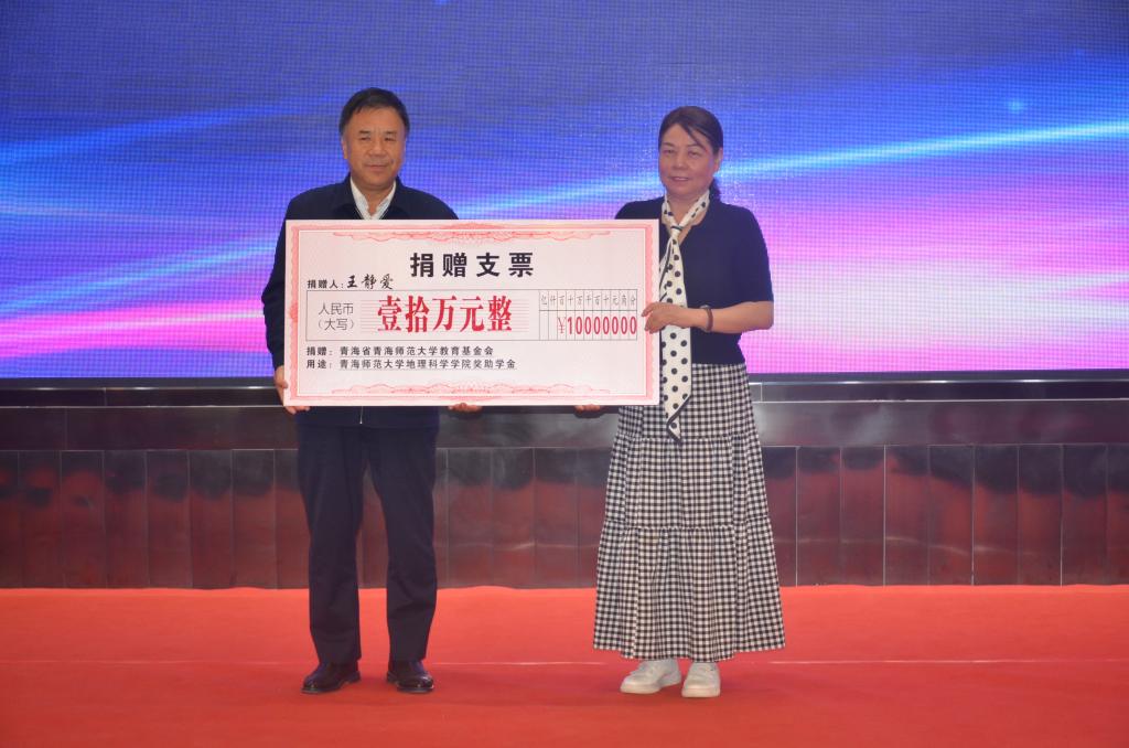 毕业典礼在雄壮的国歌声中拉开帷幕。首先进行的是“江源优秀学子奖、江源优秀教师奖”捐赠仪式,捐赠仪式由青海省bat365在线平台登录教育基金会秘书长杨迎春主持。北京师范大学“四有好老师”金质奖章获得者王静爱教授将10万元奖金全部捐赠给青海省bat365在线平台登录教育基金会,用于奖励地理科学院优秀学子、优秀教师。校党委副书记、常务副校长、bat365在线平台登录教育基金会副理事长马德明代表基金会接受捐赠并向王静爱颁发捐赠证书。马德明在讲话中代表基金会向王静爱老师表达了诚挚谢意。王静爱老师发表了热情洋溢的致辞,希望学院师生像习近平总书记要求的那样,争做有理想信念、有道德情操、有扎实学识、有仁爱之心的"四有"好老师。随后,马德明副理事长、王静爱教授向学院获得“第二届江源优秀学子奖”的获奖同学颁发了荣誉证书和奖金。