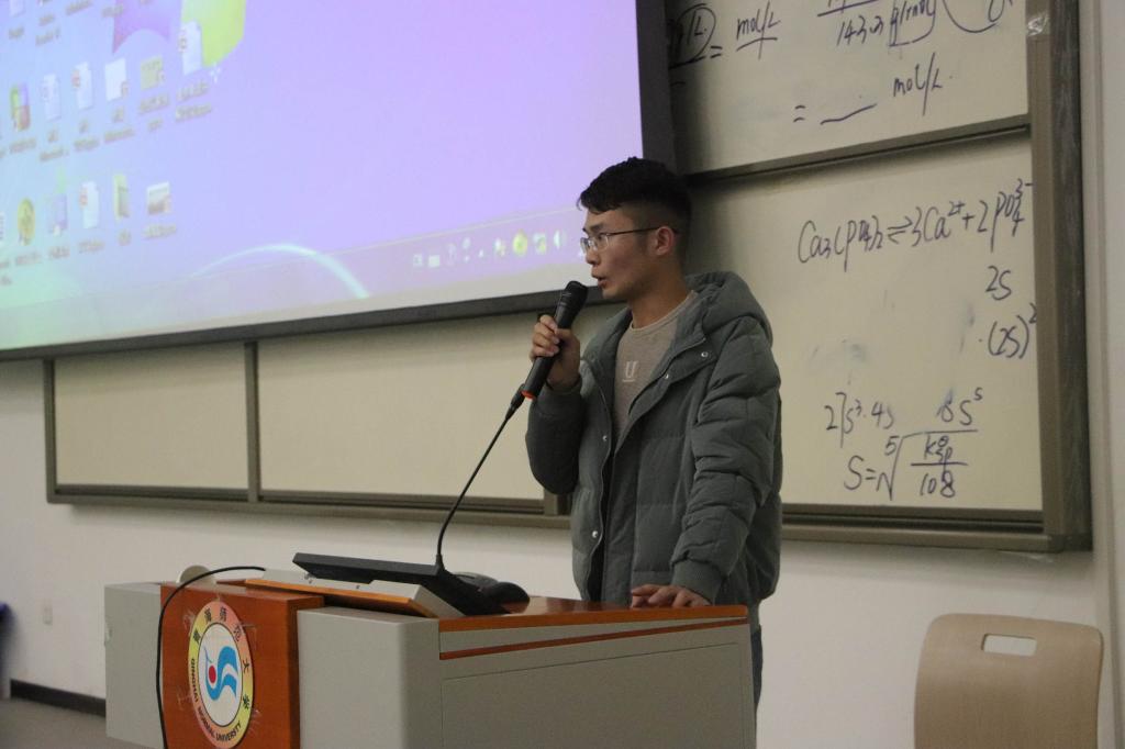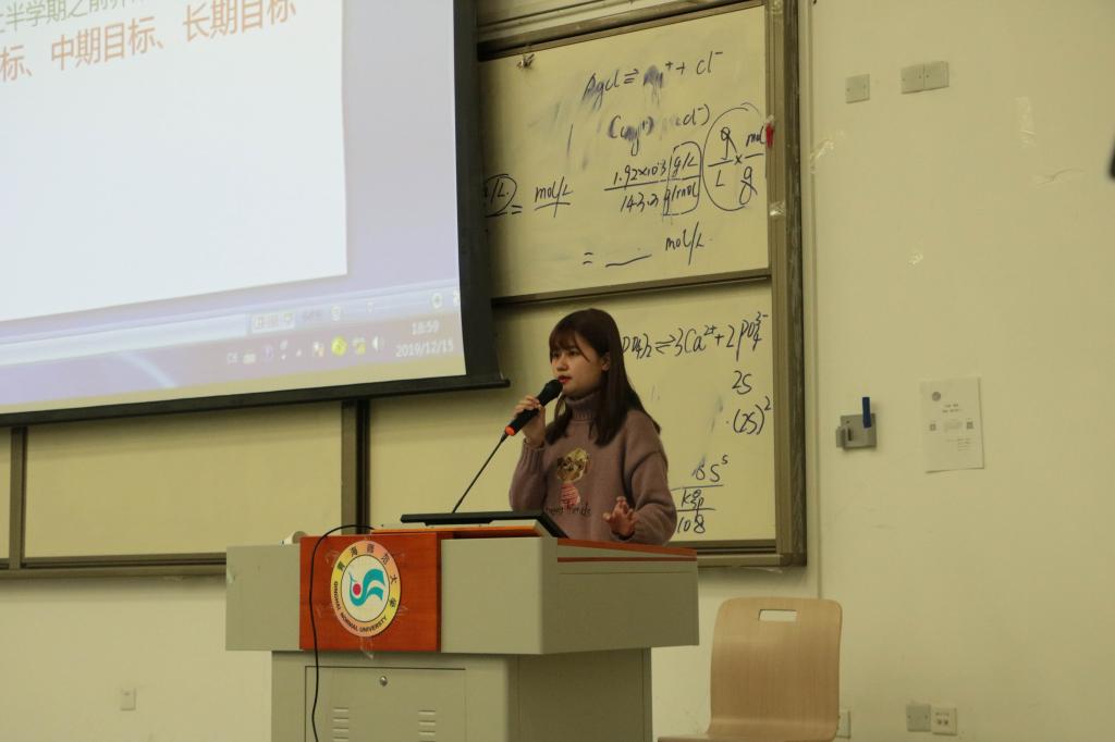 会上,谢文新同学从不忘初心、坚定信念、知行合一、遇见一切可能四个板块,为大家详细讲解了自己在大学期间的学习心得,强调了目标与计划的重要性。