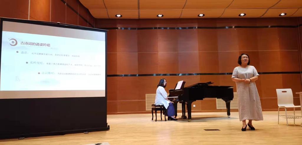 讲座中,刘桂珍教授围绕中华诗乐的气韵开讲,从《诗经》引出了中华诗乐的起源。她讲到了“诗之心、乐之声”文学是音乐的灵魂,音乐是文学的血脉;她以《沧浪歌》《关山月》《下江陵》等优秀的古诗词为例给大家讲了古诗词的诵读吟唱;她还声情并茂地演唱了这些作品,并让在场的全体师生进行哼鸣伴唱,让大家从诗乐中感受气韵。最后,刘桂珍教授演唱了陆游的《钗头凤·红酥手》,仿佛将全体师生都带入了陆游与唐婉的爱情悲剧中,刘桂珍教授精彩的讲座赢得了大家的阵阵掌声。