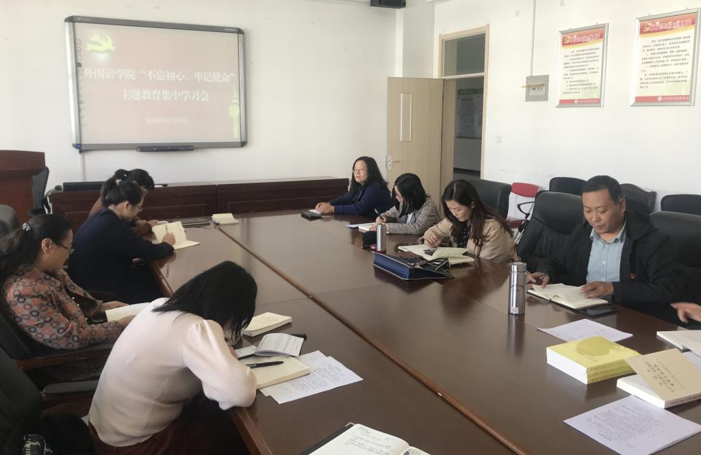 10月16日下午,外国语学院党总支举行“不忘初心、牢记使命”主题教育第四次集中学习会,党总支委员、支部书记及全体教工党员参加会议。