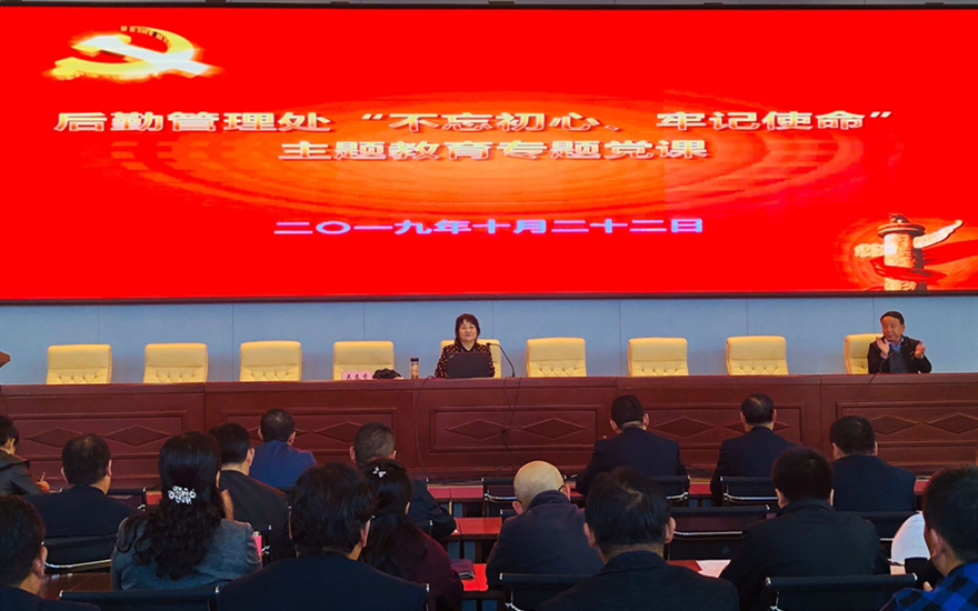 为进一步深化“不忘初心、牢记使命”主题教育学习教育成效,切实宣传、贯彻、落实好省委十三届六次全会精神,10月22日下午,后勤管理处邀请马克思主义学院教授吴春香在城北校区行政楼一楼报告厅为全体党员和中层干部开展了以“‘省委十三届六次全会’‘不忘初心、牢记使命’主题教育精神宣讲”为主题的形势教育专题党课,讲座由副处长尹青松主持。