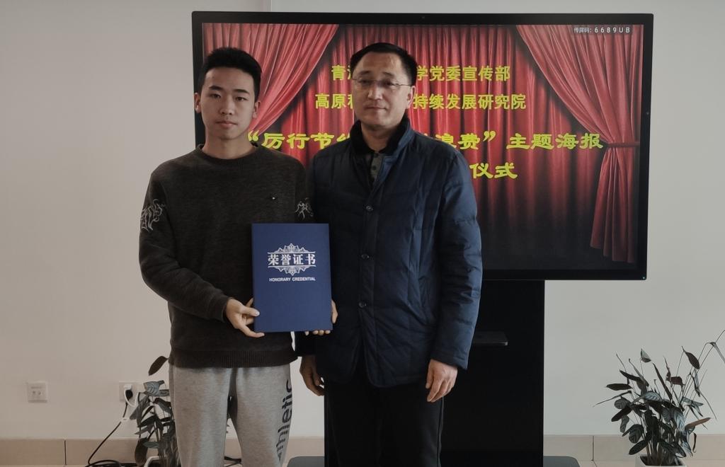 1月4日中午,由校党委宣传部、高科院联合举办的“厉行节约,反对浪费”主题海报设计大赛颁奖仪式在高科院会议室举行。校党委常委、宣传部部长牟昱苍出席,海报设计大赛的获奖学生代表以及学校新媒体中心、高科院办公室相关人员参加颁奖仪式。
