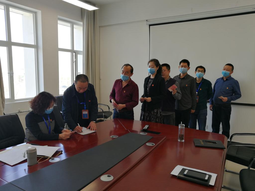 活动中,支部书记王安平做了题为《发挥党员先锋模范作用让党旗在疫情防控一线高高飘扬》的专题党课。并且全体党员面向党旗重温了入党誓词,现场缴纳了3月份的党费。