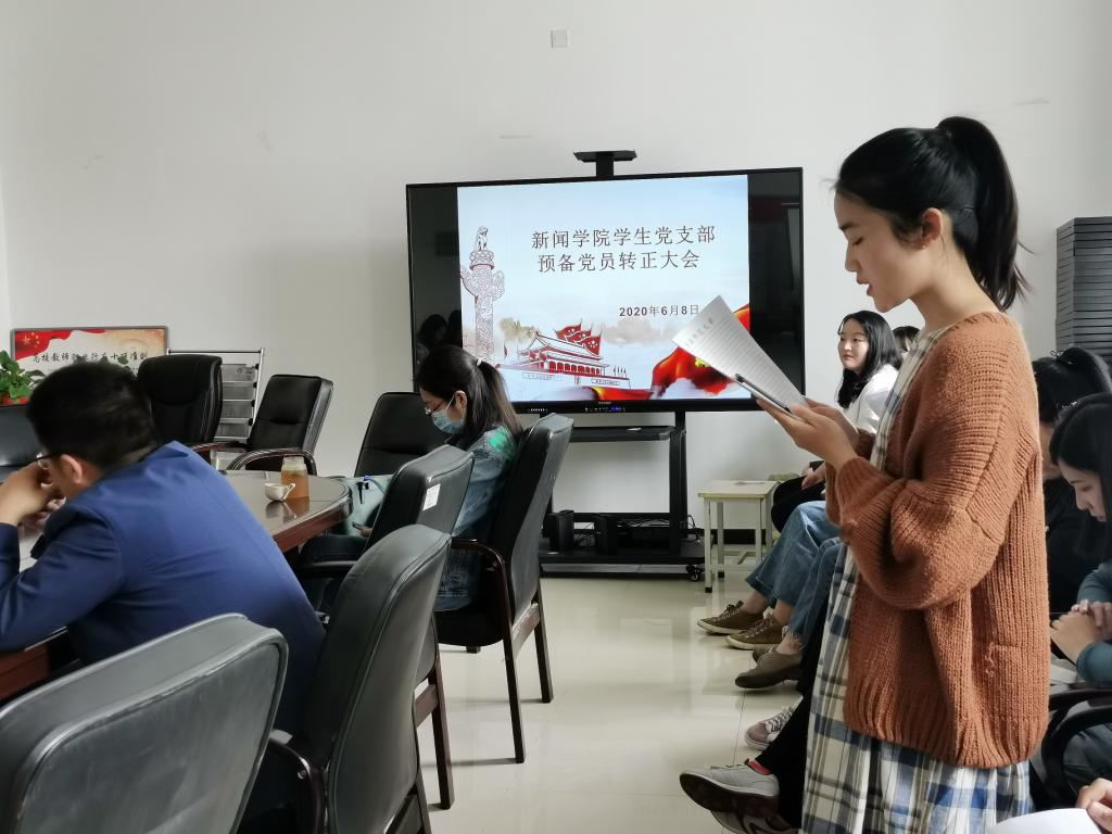 6月8日,新闻学院学生党支部召开党员大会,研究代晓芬等10名预备党员转正事宜,院党总支副书记张晓婷参加会议。会议由学生党支部书记曹燕红主持,严格按照发展党员工作程序执行。