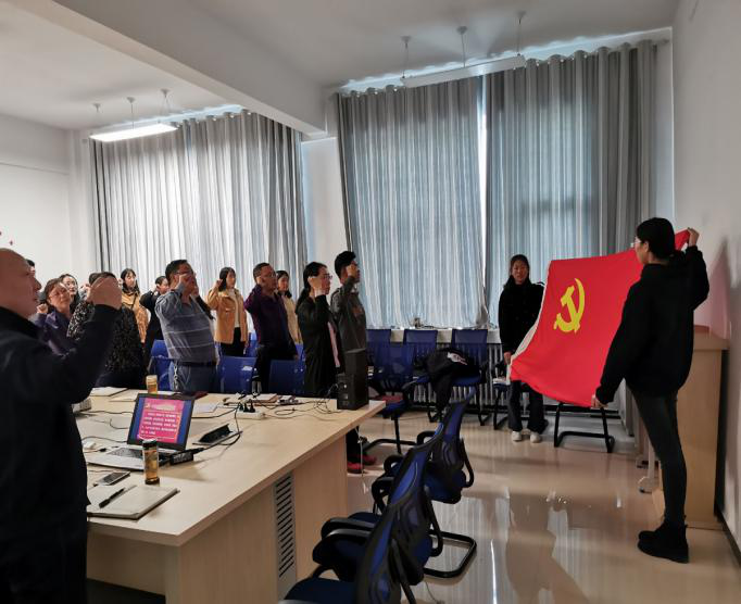 随后,全体党员重温入党誓词,在党旗下庄严宣誓,活动圆满结束。
