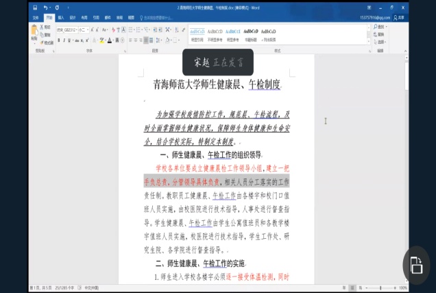 3月29日晚,在线下自学的基础上,学院通过企业微信平台召开教师专题视频学习会,学院党总支书记谢锟组织全体教师对《bat365在线平台登录疫情防控及突发公共卫生事件报告制度》《bat365在线平台登录师生健康晨、午检制度》等六个制度进行再传达、再学习,并结合学院实际对相关工作进行安排部署。学院各班级也利用钉钉、QQ等平台组织召开主题班会,学习制度、明确要求、掌握方法。
