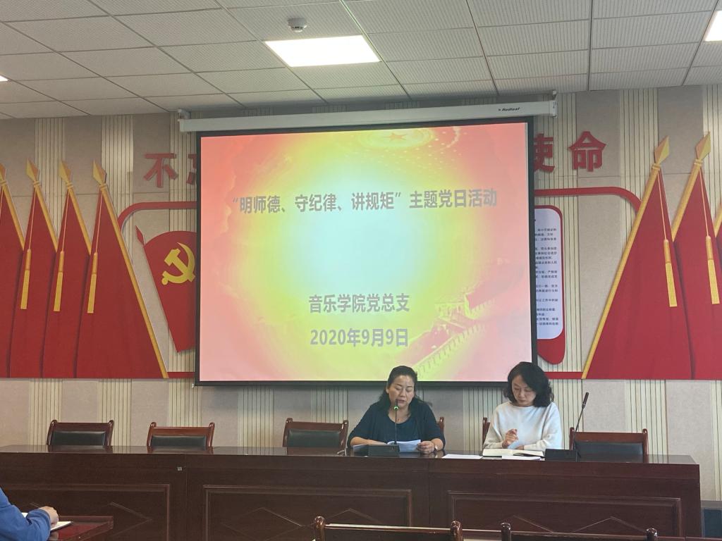 9月9日下午,音乐学院党总支结合学校“师德建设月”活动开展了“锤炼新时代人民教师”主题党日活动,活动由教工支部书记陈璐主持,全体教工党员参加了本次活动。