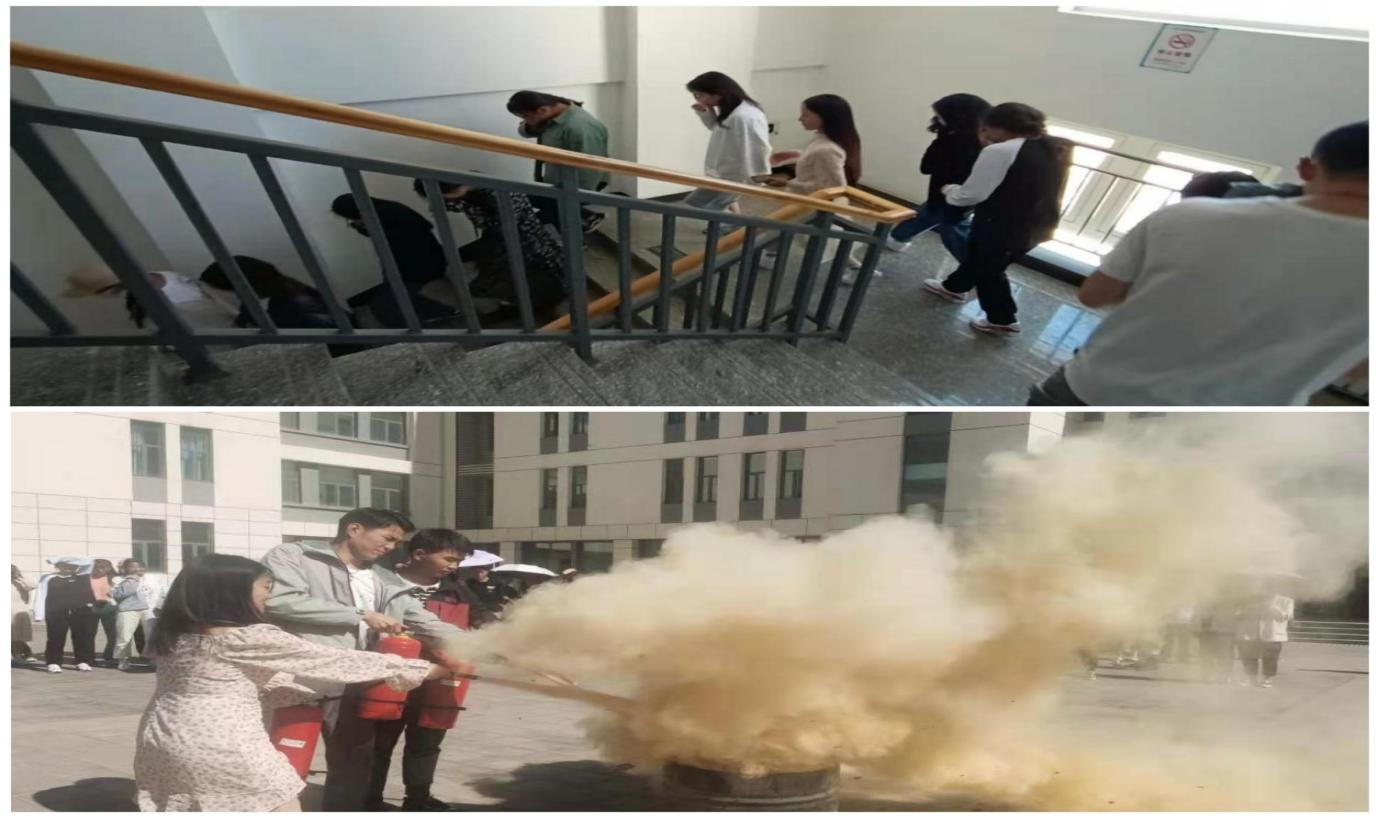 最后,在保卫处、生物园区消防大队,及学院教师的配合下,全体学生在科技楼B栋进行了实验室消防应急演练,进一步增强了学生在火灾来临时的紧急应变能力,整个应急逃生过程有效控制在40秒以内。