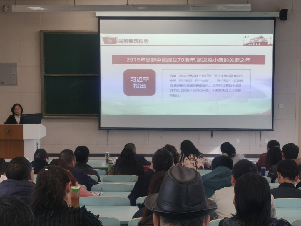 本次课程由宣讲团讲师、马克思主义学院党总支书记李姝睿教授主讲,讲授题目为《增强忧患意识,防范重大风险》。李姝睿从深刻认识形势变化,始终保持高度警惕、提高防控能力,肩负起防范化解重大风险政治责任三个方面深入浅出地分析了我国当前存在的重大风险,从国际、国内两个角度介绍了国家安全面临的危机和挑战,提出作为党员,尤其是党员干部,要强化风险意识,提高风险化解能力,树牢底线思维,善于从纷繁复杂的矛盾中把握规律,不断积累经验、增长才干,保持斗争精神、增强斗争本领,做到居安思危,牢牢把握工作的主动权,把防范化解重大风险的各项工作真正落到实处。讲座政治站位高,理论有深度,实例鲜活接地气。使听讲座的教职工对我国发展所面临的国际环境复杂性、国内改革艰巨性有了更进一步的理解。更加清醒地认识到作为党员,要放眼世界、胸怀祖国,强化大局意识,把握正确的政治方向,要有坚守底线的坚定性和自觉性;同时,要常怀忧国忧民之心,增强忧患意识,加强作风建设,勇于担当作为,立足岗位奋力拼搏。