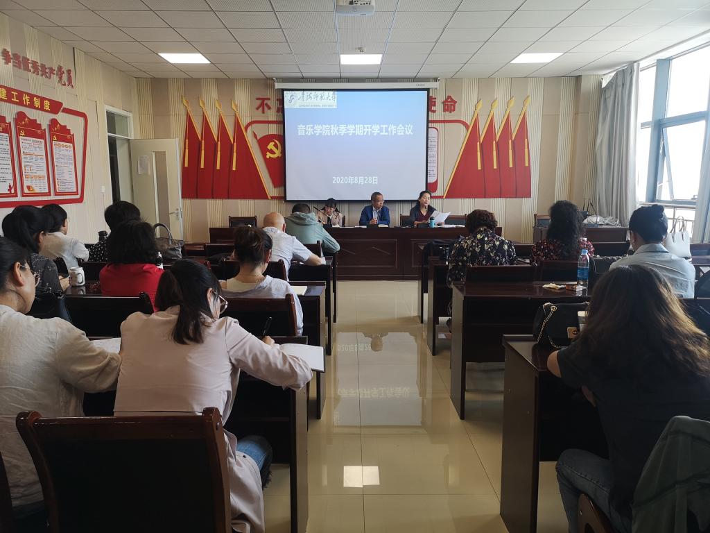 8月28日上午,音乐学院召开2020-2021学年第一学期开学工作会议,会议由学院党总支副书记宋睿青主持,学院党总支书记王永革、副院长王金锐及音乐学院全体教职工参加了会议。