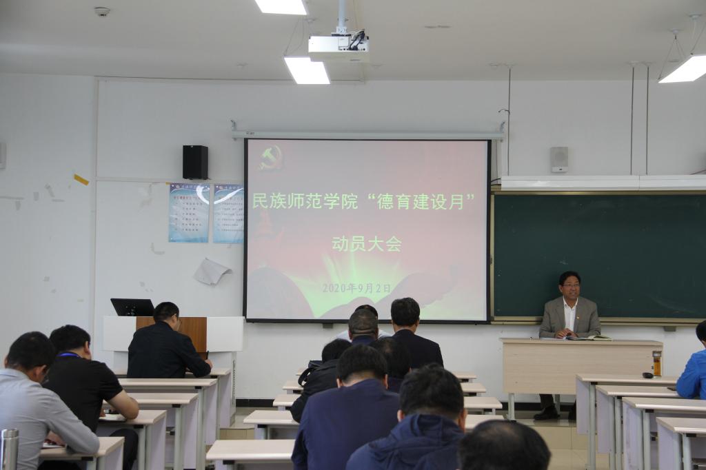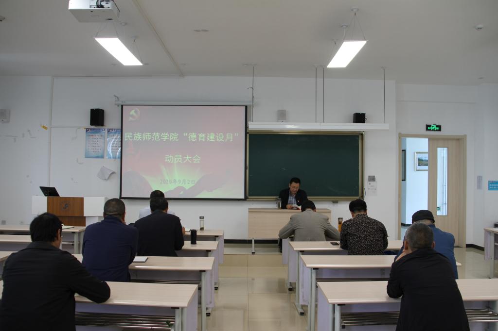 9月2日下午,民族师范学院召开全体党员大会,正式启动以“德育建设月”为载体开展的“明师德、守纪律、讲规矩”专项教育活动。院党委副书记、副院长吉太加,副院长陈永良、各支部书记以及全院师生党员共57人参加了会议。会议由吉太加主持。