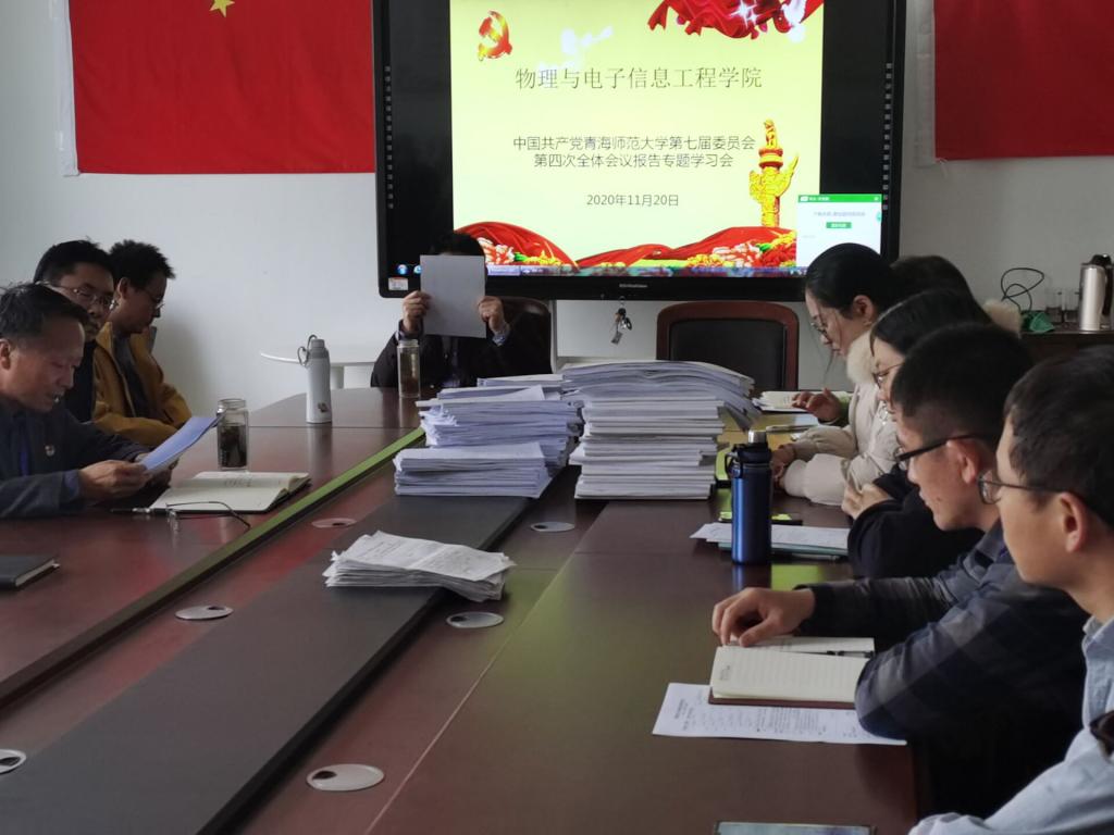 11月20日下午,物理与电子信息工程学院召开全体教职工会议,传达学习《中国共产党bat365在线平台登录第七届委员会第四次全体会议报告》,会议由院党总支副书记王敬佩主持,院长邵鑫出席。