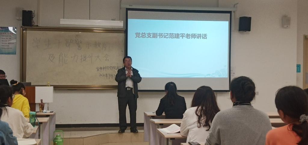 为进一步提高学院学生综合素质,增强学生法律意识,规矩意识,增强自我教育、自我管理、自我服务的意识,切实提高学生干部的工作能力和工作效率。9月9日晚,生命科学学院团总支组织全院学生干部开展学生干部警示教育及能力提升大会。党总支副书记范建平和院团总支书记马晓红、团总支各部成员、学生会干部、各社团、组织负责人以及大二至大三各班班长和团支书参加此次会议。