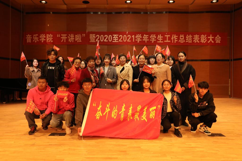 随后,音乐学院进行了2020至2021学年学生工作总结表彰大会,通报了近期学生工作,对在2020-2021学年表现优秀的学生干部及在各类比赛中获奖的集体和个人进行了表彰。