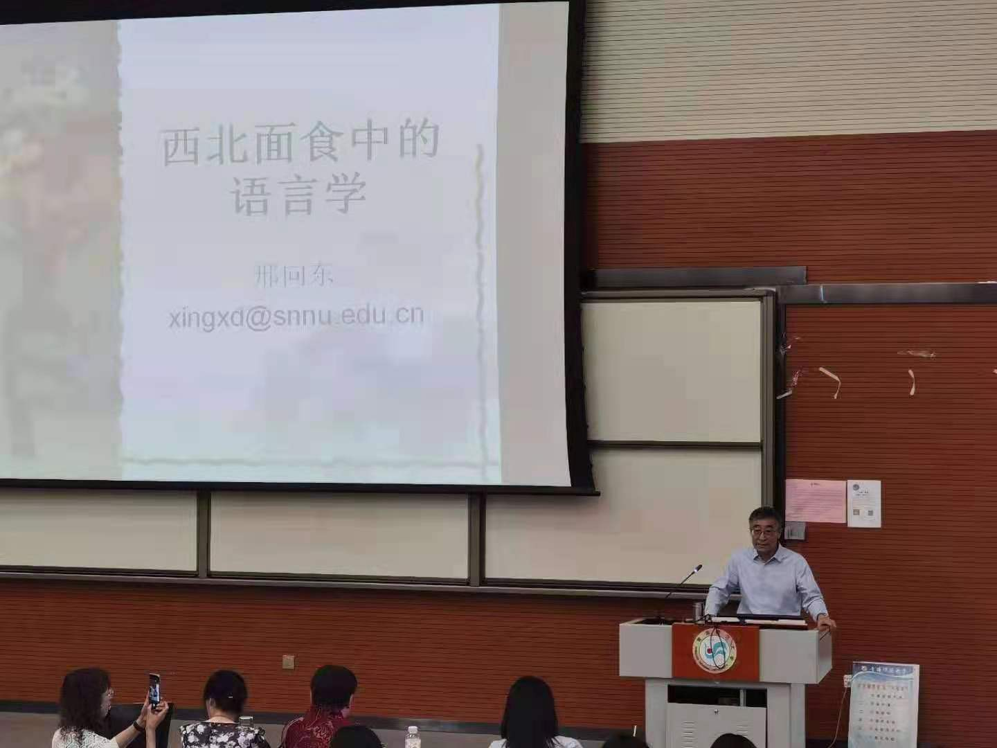 邢教授根据自己常年在西北地区田野调查过程中发现的不同面食入手,以从“焪锅”看通摄三等韵见晓组字的腭化—一种词汇扩散式的音变、从“曲连馍”的不同叫法看分音词以及部分匣母字的来历、从“饺子”的不同叫法看宕江摄入声字在北方方言中的异读及从“酿皮子”和“黏面”看泥、娘母有别等小论题开展了此次讲座。