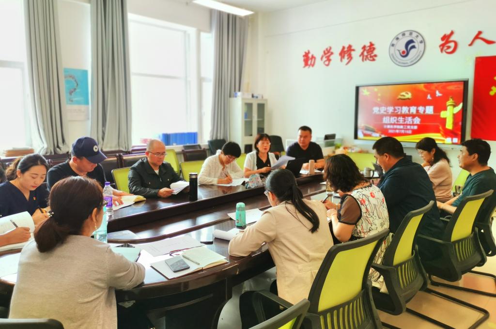 根据《关于召开党史学习教育专题组织生活会的通知》文件精神及要求,计算机学院教工党支部精心准备,在完成组织生活会的各项前期准备工作、向学院党总支书面请示并征得同意后,7月15日下午,计算机学院召开了教工党支部党史学习教育专题组织生活会。会议由支部书记彭春燕同志主持,党员领导干部、党员教师及群众代表参加。