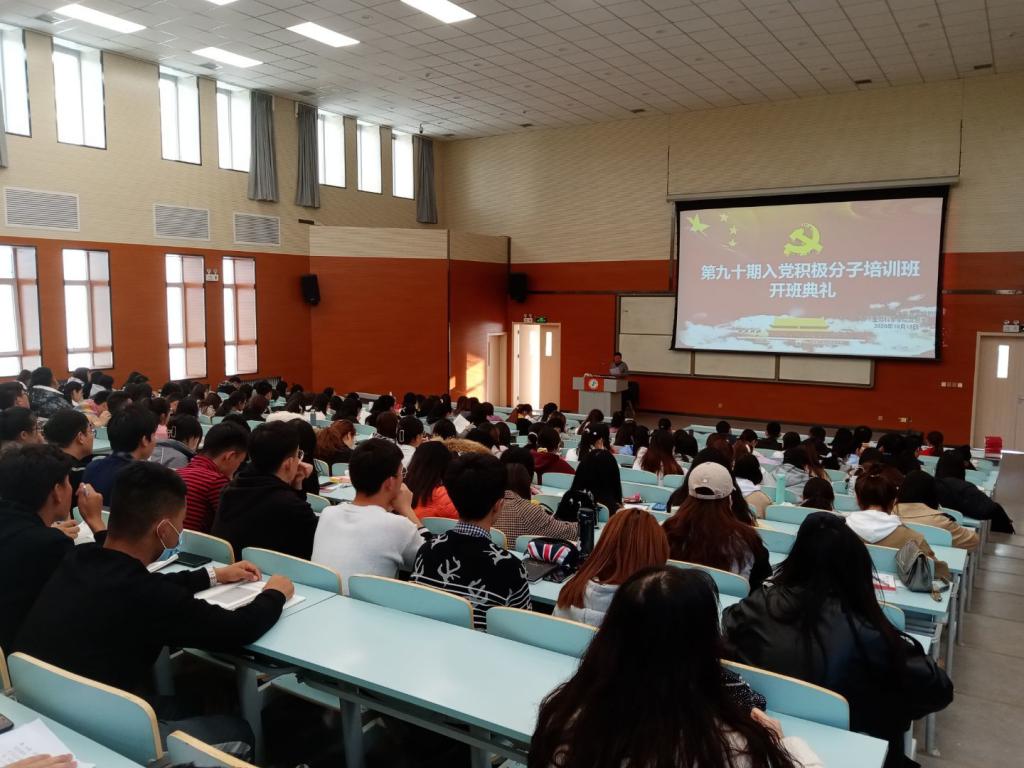 为做好2020年师生党员发展和教育管理,进一步加强学校基层党建工作,10月17日,由bat365在线平台登录党委组织部主办,生命科学学院党总支承办的第九十期入党积极分子培训班正式开班,来自教育学院、马克思主义学院、法学与社会科学学院、经济管理学院、美术学院、音乐学院、外国语学院、新闻学院的240余人参加了开班仪式。