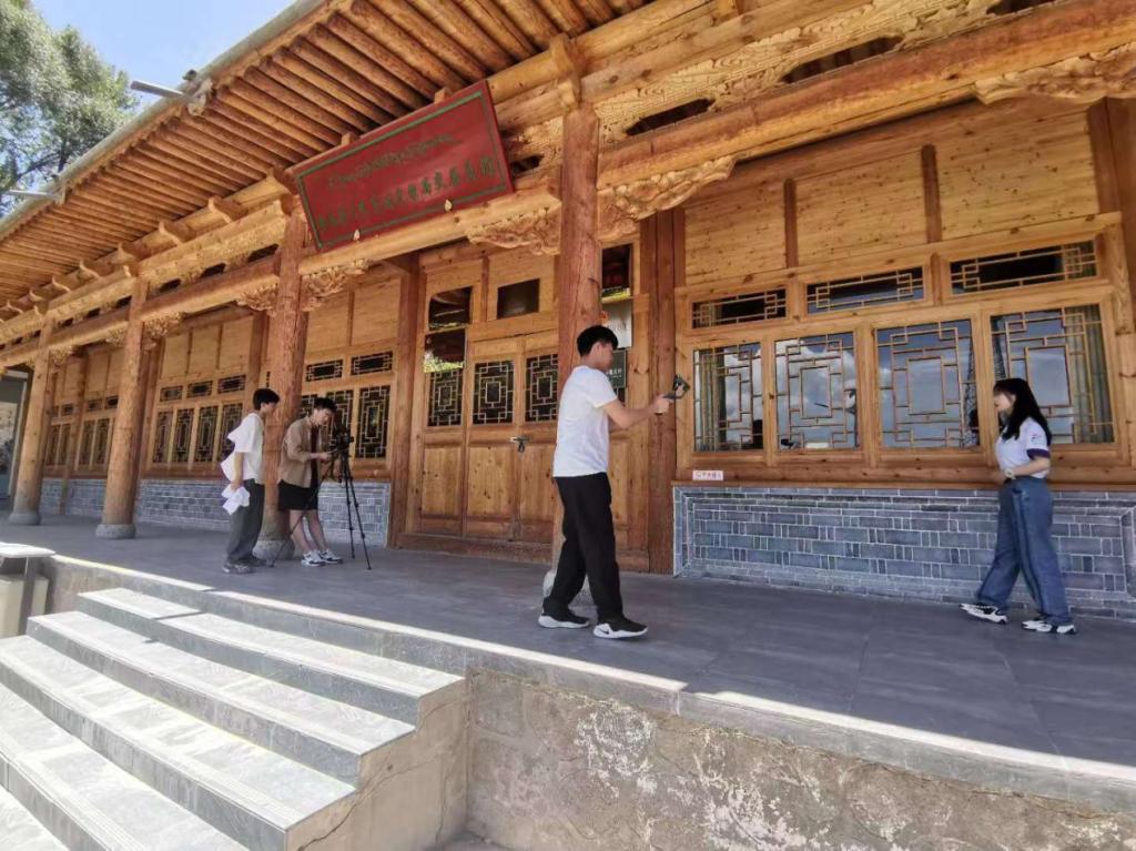 在大史家村历史展览馆,成员们分工明确,按照出发前做好的准备,有条不紊地开展活动纪录片的拍摄工作。2019级网络与新媒体专业高雄同学作为纪录片的领学人,以“青年大学习”短片的展现形式,初步完成相关拍摄;2019级汉语言文学专业马麦艳、朱晓雨同学通过访谈的形式,对当地村民进行了调研,遴选并采访大史家村当中革命先烈家庭及村民,对这些采访对象进行深入的报道;2019级网络与新媒体专业刘成浩、苏丽金、王海强、青海大学马瑶琳同学以青年视角,通过镜头,记录大史家村在“红色”基因和乡村特色旅游中走出的一条创新道路。