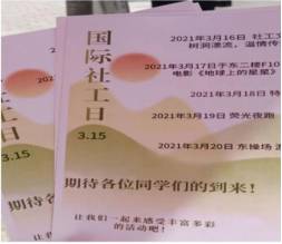 3月16日是国际社工日,本次社工日主题为“我因我们而存在”,为了宣传好社会工作“助人自助”理念,开展好“汇聚社工力量 助力乡村振兴”社会工作宣传周活动, 3月15日,在法学与社会学学院社会工作专业师生的组织下,校内社会工作宣传周活动正式启动。启动仪式现场,社会工作专业学生通过发放宣传单、解答社会工作相关知识、张贴宣传海报、组织学生签字等形式积极向广大师生宣传普及社会工作专业知识。宣传周内,学院还将组织观看影片、知识竞赛、讲座、社团剪影等活动,。进一步提高校内师生对社会工作专业的了解与认识,促使社会工作人才在提供专业服务、解决群众困难、化解社会矛盾、推进社会治理、助力乡村振兴、促进社会和谐方面等方面发挥的作用。