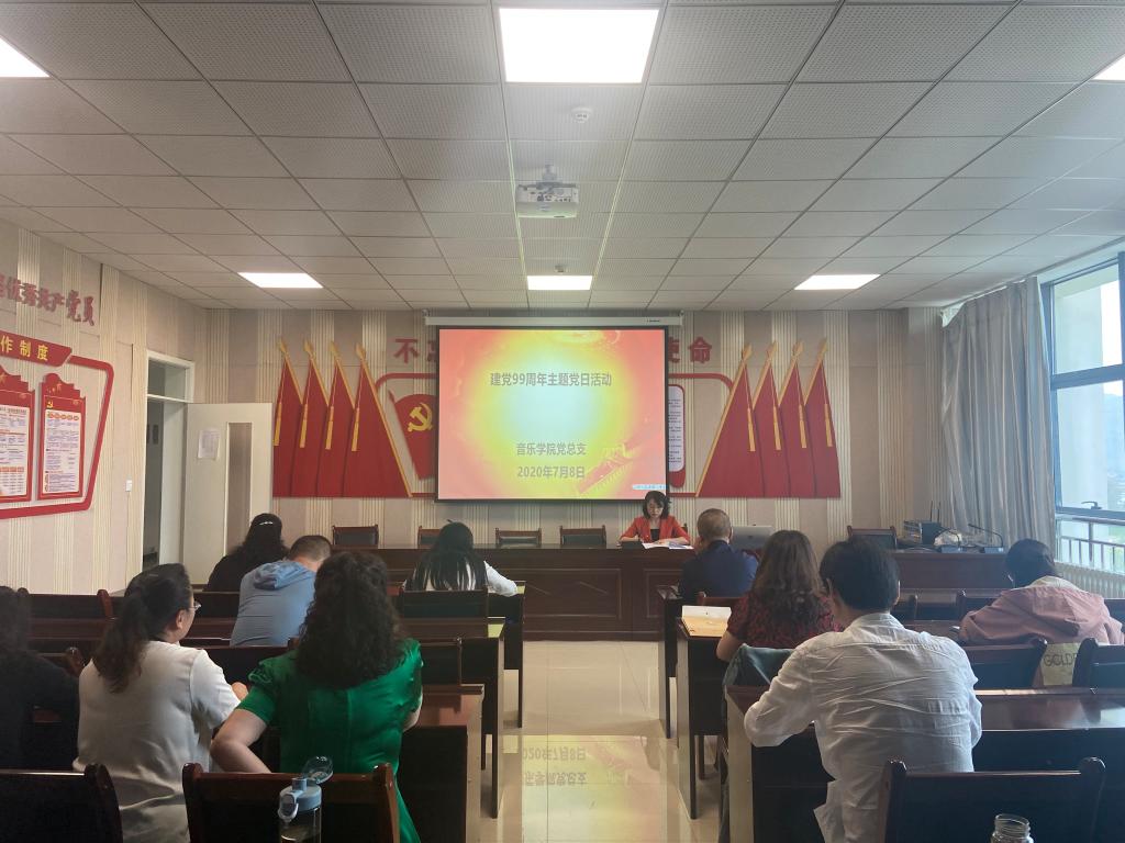 为纪念建党99周年,7月8日下午,音乐学院于在音乐学院三楼会议室举行主题党日活动,活动由教工支部书记陈璐同志主持,全体教师党员参加了本次活动。