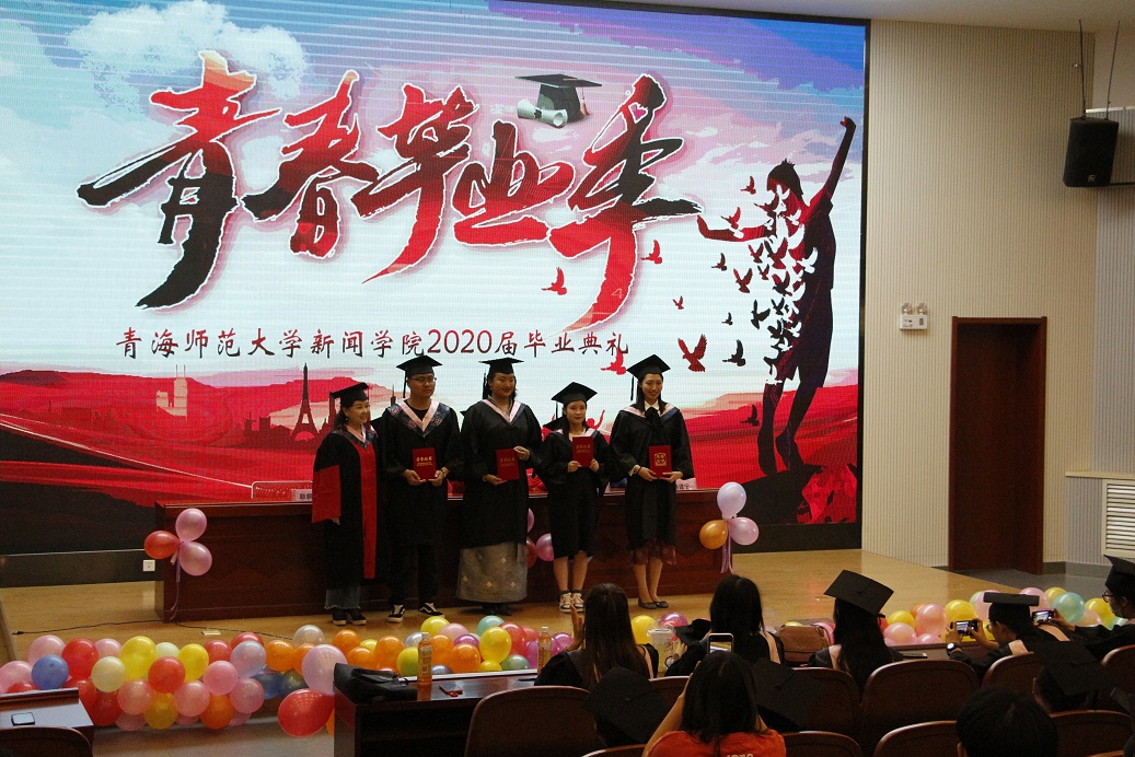 学院教师代表才让卓玛、路建宁分别致辞,勉励2020届毕业生在未来的人生道路中,坚守初心,坚守良知,坚守底线,坚守理想。齐晓辉、薛子凡在发言中,分别回顾了自己四年大学生涯,感谢父母养育和师长培养,感谢青海师大提供的发展平台和机遇。