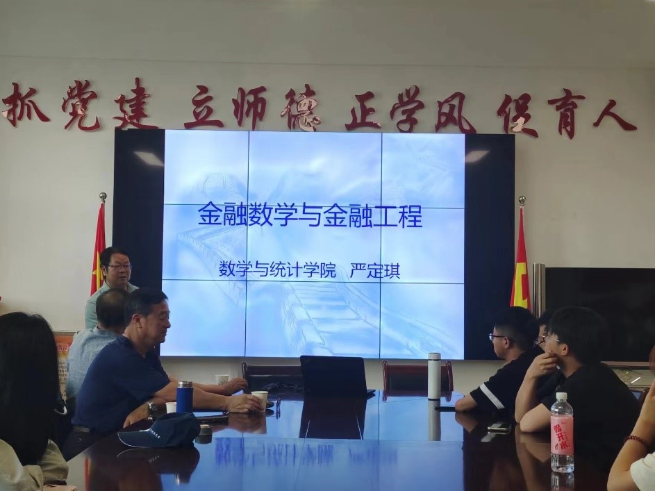 徐剑侠对求解高次不等式有深刻的理解,并且总结出一套行之有效的方法,通过大量的实例验证了方法的快速有效性;伍渝江对高阶方程组的解的计算给出了几类基于HSS的算法,结合最新研究成果展示了算法实例;严定琪阐述了金融数学与金融工程的联系与区别,深入介绍了统计学方法在金融数学与金融工程中的应用。讲座结束后,三位老师与参会师生进行了热烈的交流。