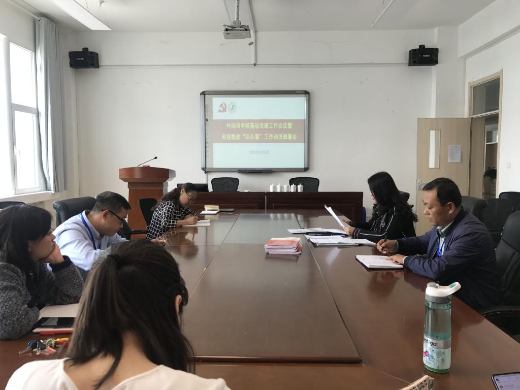 5月20日下午,外国语学院召开基层党建工作会议暨巡视整改“回头看”工作动员部署会,学院党总支委员、各支部委员参加会议,院党总支书记、院长马金芳主持会议。