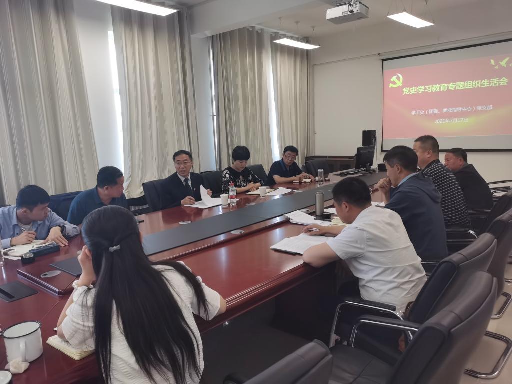 按照学校《关于召开党史学习教育专题组织生活会的通知》要求,7月17日上午,学工处(团委、就业指导中心)党支部在行政北三楼会议室召开党史学习教育专题组织生活会。校党委副书记许存宁以普通党员身份参加会议,机关党委委员李红霞同志到会指导,会议由支部书记周晶主持。