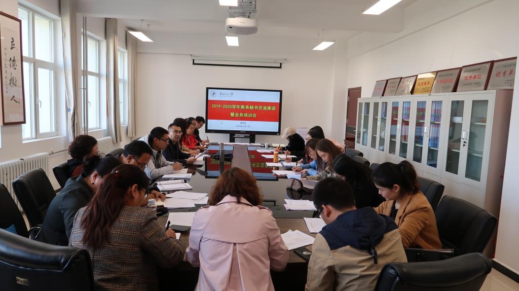 为扎实开展“不忘初心,牢记使命”主题教育活动,进一步加强教学管理工作,不断提升本科教学质量。10月17日上午,教务处组织召开2019—2020学年第一次教务秘书交流座谈暨业务培训会,各学院教务秘书、教务处相关人员参加了会议。会议由教务处处长马俊主持。