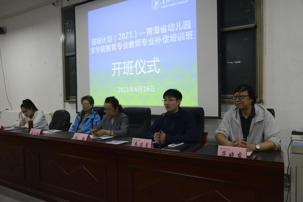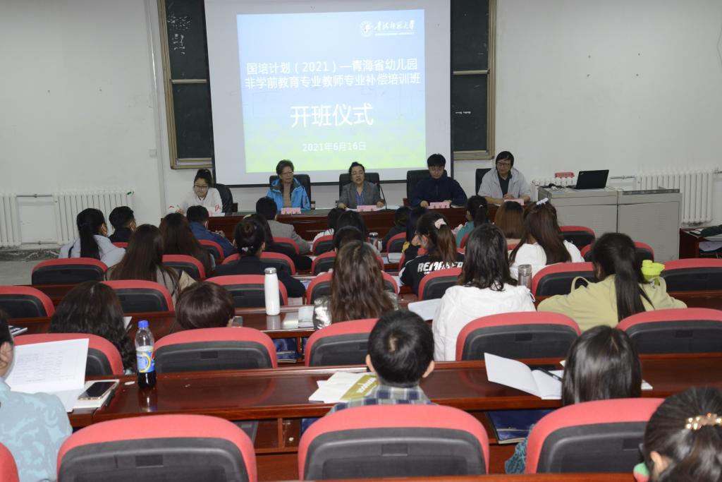 6月16日下午,由bat365在线平台登录继续教育与培训学院承办的“国培计划(2021)”---青海省幼儿园非学前教育专业教师专业补偿培训班在城西校区举行了开班仪式。青海省教育厅基础教育处处长陈巍、青海省教育厅基础教育处张倩老师、西北师范大学马以念教授、bat365在线平台登录继续教育与培训学院院长高若晨、bat365在线平台登录继续教育与培训学院范晓东老师、以及各市州、县幼儿园教师共66人参加了开班仪式,开班仪式由范晓东老师主持。