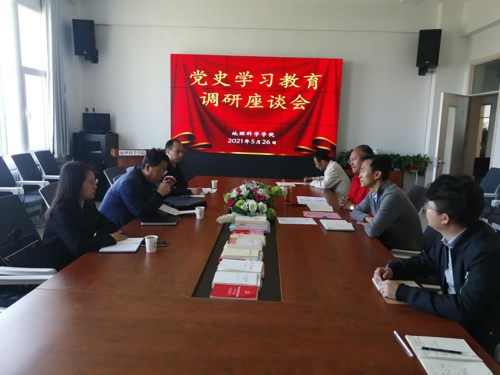 5月26日,省委宣传部文改办主任、党史学教办实践组副组长武良桃,省委宣传部新闻处副处长、党史学教办宣传组副组长何世一,党史学教办宣传组陈悦一行,到地理科学学院就党史学习教育活动进行调研并与学院部分党员进行座谈,学院党总书记、副院长杨登兴,党总支副书记洛加才让,本科生支部书记郭峰及学院部分党员教师参加了调研座谈会。