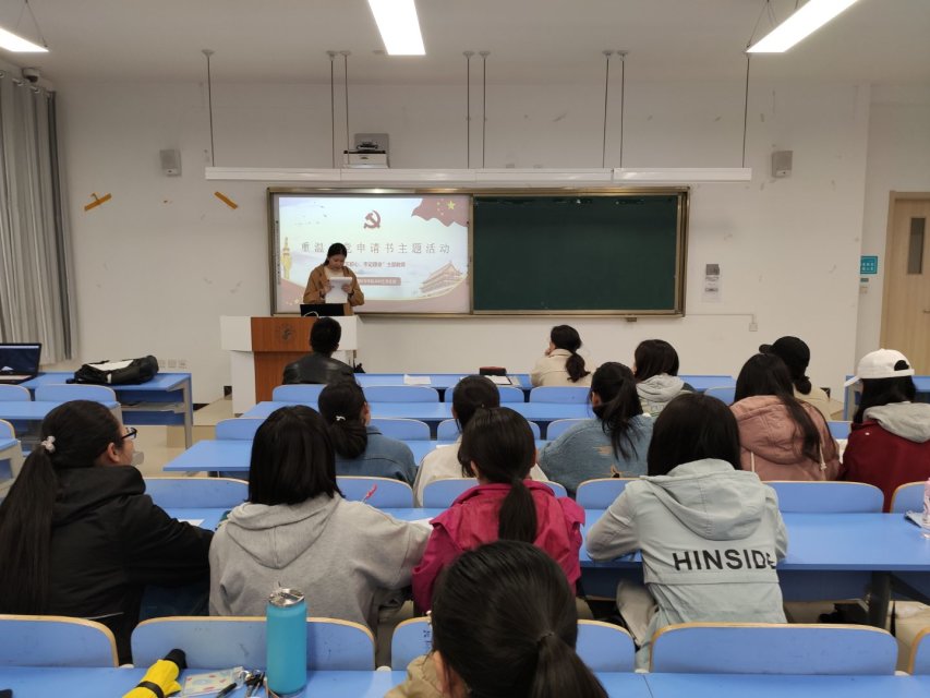 会上,学生党员许钟霖向大家阐述了入党志愿的重要性,优秀学生党员代表王思晴向大家朗诵了几份优秀的入党志愿书,大家一起学习并回忆当时写入党申请书的那份激情,感慨万千。