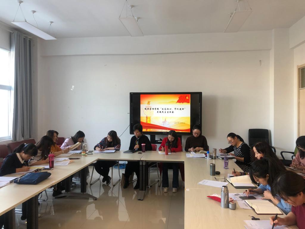 根据中央、省委和校党委的统一部署,经济管理学院党总支于12月4日下午召开了“不忘初心、牢记使命”专题民主生活会。校纪委魏海燕同志到会指导。经济管理学院党总支书记邹文军主持会议,全院教工党员参加会议,教师代表、民主党派代表列席会议。
