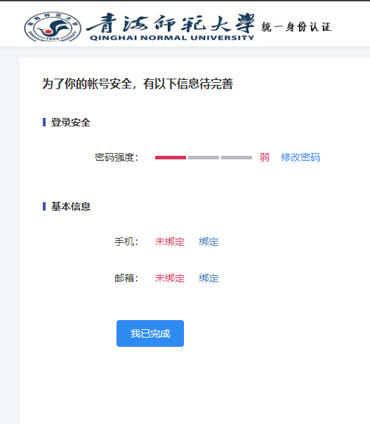 2.如未绑定手机与邮箱,将会出现如下图所示,请点击绑定,分别绑定手机与邮箱
